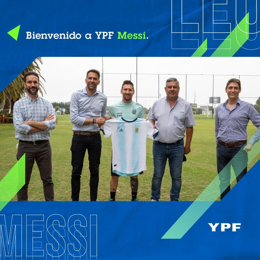 Mas novedades!! Para seguir potenciando el deporte, el trabajo en equipo y eso que mueve el corazón de cada hincha de este suelo, Sergio Affronti y Santiago Carreras firmaron un acuerdo con Leo Messi para que sea la nueva cara de nuestro acuerdo con AFA. #EnEsteSueloHayFútbolAl encuentro también asistieron chiquitapia, presidente de AFA, y Leandro Caruso, Gerente de Márketing de YPF